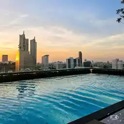 🏊🏻♀️ The rooftop swimming pool is very beautiful. There is a kid pool for the kids to watch the sunset. You can see the view of ICONSIAM. If you come to watch the fireworks at the end of the year, this corner is the best! 🎇