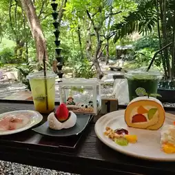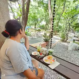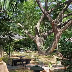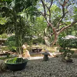 A lot of gardens and trees, shady, overall a good atmosphere, only one large table with air conditioning, the rest are outdoor seats, a spacious and shady place with very cute dogs, Ba Chang and Mon Thong