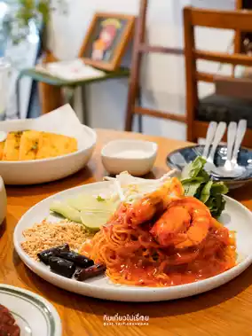 The location is a cafe in the Nawamin area, our regular shop, happymum happyme, a homey style cafe that is also pet friendly, with Khun Thongkwao and Thongchup to welcome you🐶🐶