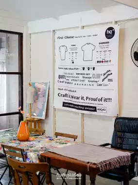 As for the shirt-making workshop, it will be on the 2nd floor of the house, with clearly separated zones, cool air conditioning, and a separate name called Happy Quarters for organizing activities specifically. When we arrive, we choose the style, color, and size of the shirt we want, then choose the message we want to put on it, which can be put on the front and back of the shirt, giving us complete freedom!