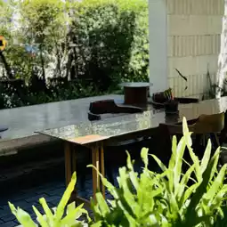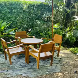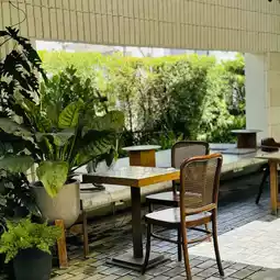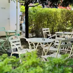 It is a cafe decorated in a Muji style garden, cute and shady.