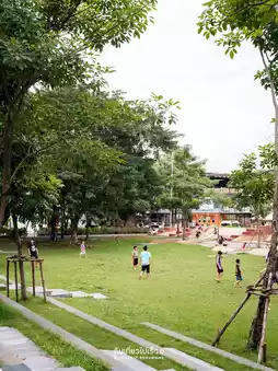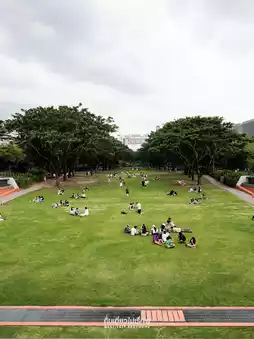 #Outdoor activities Take the opportunity to chill out on the weekend like this at Chulalongkorn Centenary Park. It can be considered another place for all ages to come out and do activities together during free time, especially in the evenings and on weekends. There are often groups of people who come to run, play badminton, walk their dogs and cats, or even just sit and talk to each other to use as a relaxing time.