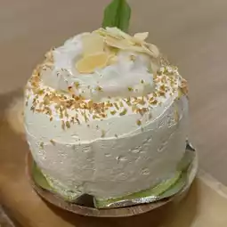 1. **Young Coconut Cake:** A soft cake topped with fresh cream, young coconut meat, almond slices, and pandan leaves for a mild aroma. The flavor is light and slightly sweet, perfect for those who enjoy refreshing and airy cakes.