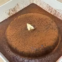 2. **Chocolate Cake:** A dense chocolate cake dusted with cocoa powder, adorned with a small piece of gold leaf on top. It has a rich flavor, sure to please chocolate lovers.