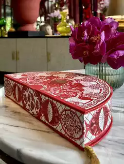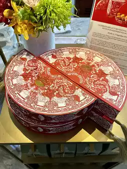🥮 The dessert is in a red box containing 8 pieces (Classic Box) with a hotel bag.