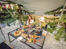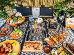 #Get a discount without relying on luck. Come chill at Sushi Campo, a Japanese restaurant that caters to campers who don't have to go far because Sai Mai has it too. The evening atmosphere like this, sitting and eating sushi while enjoying the cool breeze is so great. There are a variety of sushi, grilled food, and sashimi to choose from at affordable prices. Sushi starts at 9 baht, and the grilled set is only 199 baht. Invite your friends to chill out. The atmosphere around the shop is surrounded by trees and there are cool photo spots. The shop has both air-conditioned and outdoor areas. Recommended menus include Campo yakitori set, kani miso, raw fish including jumbo wagyu roll, salmon salad, and many other menus to choose from. If you haven't tried it yet, you have to come and try it. #Japanese food #delicious food #Pathum Thani