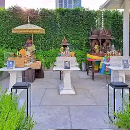 Today, Ek and Jane invite you to worship and ask for blessings from Lord Ganesha, Rambha Ganesha, carved from hundreds of years old golden teak wood by artisans from the northern city of 7 lives at Phenix Pratunam, Bangkok.