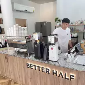 Newly opened cafe in Soi Lasalle, minimalist and homey feel, orange and brown tones. The interior is very warm and lovely, with a great mood. The shop offers drinks, bakery items, and single-dish menus, both Thai and European. The coffee menu in the shop is good, with a choice of medium-light and dark roasts. Most importantly, the price is very good. Come and relax, work from day to night.