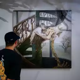 This exhibition invites us to explore the space between consciousness and subconsciousness, between childhood and adulthood, between light and darkness, through the story of a child who has to live in dim light to find something in a big house that he doesn't know what it is.
