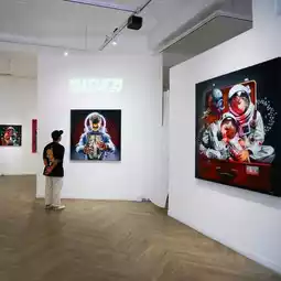 Let's travel to the theater of the future. And be a part of the conversation between the past and the future at the FUTURA DRAMATICS exhibition.