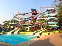 - Siam Water Park is one of the most famous and largest water parks in Bangkok. It has a large area and a variety of rides for all ages, including a giant wave pool (Wave Pool) that was recorded in the Guinness World Records as the largest wave pool in the world, colorful slides, and a Lazy River that allows you to float down the water and relax.