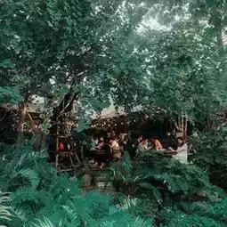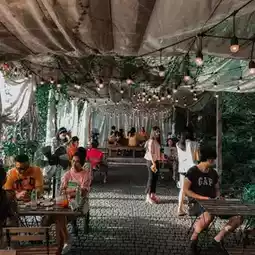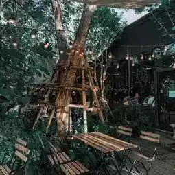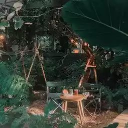 Green cafe, beautiful garden, feel like sipping coffee in the forest, surrounded by nature, listening to the sound of the waterfall, seeing the view of the lake, smelling a bit of Rustic. For anyone looking for a corner to take pictures of big trees in the city with the atmosphere of morning fog, you must come here 👍🏻🌳