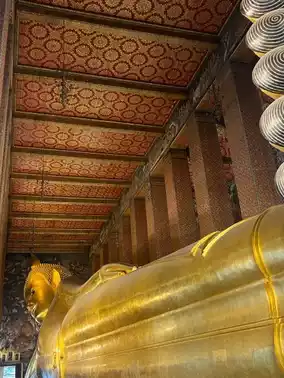 Inside, you'll find a massive 46-meter-long reclining Buddha statue. The sheer size and grandeur of the golden Buddha will leave you in awe.
