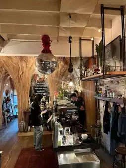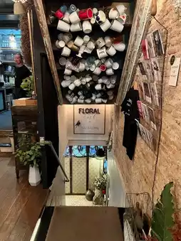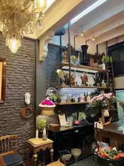 This was one of the prettiest of cafe's I have ever been to. Felt like a studio set up for a photoshoot. It's quite a unique cafe with a florist on the first level and coffee served on the second. It also seems to be very popular. Majority of the customers are dolled up young women or even slightly older. Most of them with the stamina of taking a 100 pictures every few minutes. And ordering anything but a coffee. I don't mean to judge them harshly but the coffee was alright. The cakes were even better. I feel like had the prices been slightly cheaper it would improve the coffee experience.