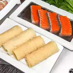 Single dishes are also included in the buffet. Red pork rice noodles, single-dish red pork, chicken leg stewed in soy sauce, garlic shrimp dumplings, various noodle dishes, red pork fried rice, pork rib and Chinese sausage rice, and many other dishes to choose from.