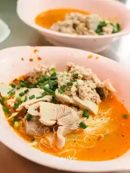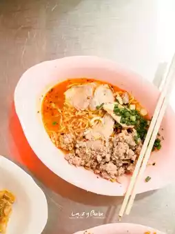 • Pork noodles with tom yum (pork slices, minced pork) 60฿