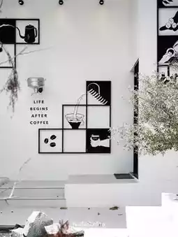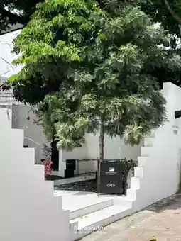 #triptravelasia Gooseberry Coffee, a black and white-themed coffee shop. We visited the Bearing-Lasalle branch. The exterior boasts white walls with coffee-inspired lines, surrounded by lush greenery to keep the heat at bay. Inside, the cafe is tranquil, with soothing music playing, adding a lively atmosphere. There are several seating areas available. The menu features coffee, croissants, sandwiches, toast, and cakes.