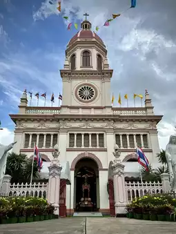 ⛪️ This sweet pastel pink church is considered an ancient Christian heritage in Thonburi and has a Thai name called after the old community, "Wat Kuti Chin".
