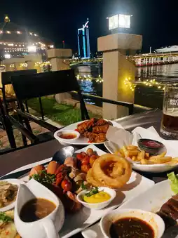 👉After you are full, don't forget to go to the bar **Brewave Playground** 🍻 It is in the same place. The atmosphere is chill. There are many drinks to choose from. There are both cocktails and draft beer. Most importantly, there is live music to listen to. The cool breeze from the river blows