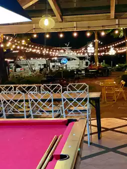 📌My favorite spot is the restaurant **Grilled & Chill** 🍽️ located on the riverside. It has a very romantic atmosphere and delicious food! With a view of the river in the evening, I must say that it is a perfect meal! There is a pool table to play for 20.-/per game 😎
