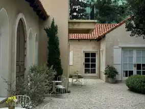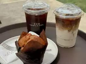 Very foreign vibes ☕️ 128 craft & soul cafe feels like a French garden in Bangkok. The green lawn, lotus pond contrasting with the building, is very beautiful. The color tones are very controlled. 🌳🍃