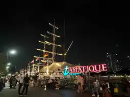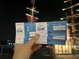 🌊 We booked online and made an appointment to board the boat at Asiatique at 6 pm. There will be a staff member sitting at the table to receive the queue and take us to board the boat at around 7 pm.