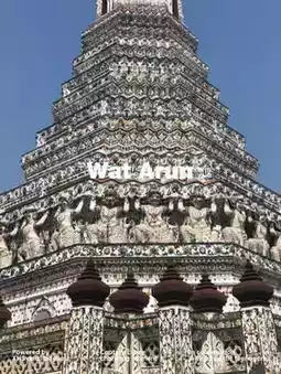The main tower (Prang) of Temple Arun is about 70 meters high and decorated with colorful porcelain tiles, showing Khmer and Chinese architectural styles.