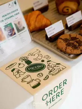 #triptravelasia Merito Coffee & Gallery is a homey, warm, and lovely cafe in the Khlong San area, not far from ICONSIAM. It's also pet-friendly, so you can even bring your pets inside! 🥹 The cafe has a cozy feel, perfect for all-day dining. It's a modern touch, perfect for sipping coffee or working, as there are power outlets at every table.