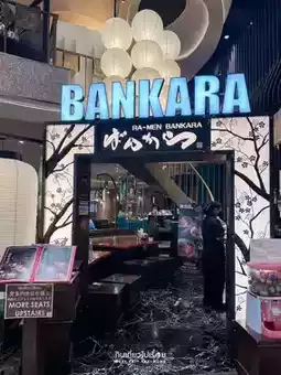 #tripพาบินเที่ยวเอเชีย Bankara Ramen, ICONSIAM branch, is located in the Veranda zone of the mall, near the exit to the Chao Phraya River Ferry Pier. The shop has 2 floors in total, giving a warm atmosphere in traditional Japanese style. It is decorated with wood and lamps, suitable for both lunch and dinner.