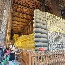 Next is Wat Pho, which has the largest reclining Buddha in Thailand. This place is quiet and has a lot of history. There are also amazing carvings.