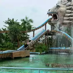 Siam Park is an amusement park with a variety of rides, suitable for children, adults, and families. Enjoy the rides all day long. Play the giant falling from a building, then the giant spider, then enjoy the view from a high angle at the tower, the fun log slide, the vortex, and other rides to have fun without getting bored. My favorite is the giant falling from a building. It's the best.