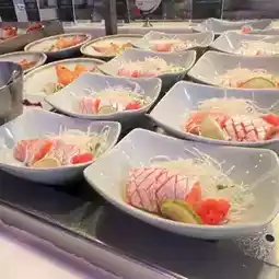 Travel Dlux invites you to eat a buffet, net price per person 759 baht, can eat for 1 hour and 45 minutes. The shop is large and has a lot of food, many people, there are various food zones, sushi, sashimi, soup zone, salad, Japanese steamed egg, Teppanyaki, many ramen menus, there is a Nabe set, pork, tempura, takoyaki. As for the special menu, there will be a card on the table, scan the barcode system at the machine, choose the food items, cook fresh, hot, they will come to serve at our table. There are many water zones, coffee, fresh coffee, desserts, panna cotta, bakery, Kakigori and ice cream, various fruits. There are a lot of food items. The Japanese food here is fresh, new, cooked fresh, eat until you are very full.