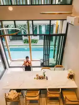 Escape from all your problems and relax your mind and eyes with a luxurious dinner, a cool glass of wine, and a Jacuzzi with a beautiful bikini at the newly opened villa in the capital city, SHAN Villas Sukhumvit, a warm-toned accommodation surrounded by nature that comes with complete facilities. It is fully equipped with 4 rooms in 1 building. There is also a dinner in a transparent dome with a romantic atmosphere that makes you imagine that this place is Khao Yai or Chiang Mai. In addition, you can take perfect photos. Every angle is beautiful. If you don't have any plans for your next holiday, try inviting your close friends to relax in Bangkok. How about that? #SHANVillasSukhumvit #SHANVillas #BangkokAccommodation #BangkokStaycation