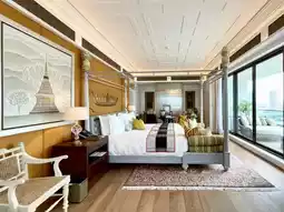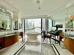 🧊 The review is the Oriental 2-Bedroom Suite, which is the most expensive room and is decorated with the best materials in the hotel. It is a luxurious party atmosphere or a family staycation. The room has 2 bedrooms, 3 bathrooms, 3 RiverView Balconies, 1 living room, 1 karaoke room, 1 kitchen and 1 dining room on a total area of 300 sq.m.