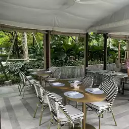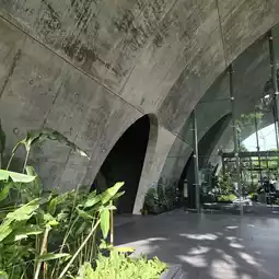 The outside garden and landscaping felt like a concrete cave in the jungle