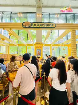 The favourite bear in Bangkok is Butterbear and you can find her café at Emsphere shopping which is located conveniently at Phrom Phong BTS station. It is a trending bear theme cookies and the Butternear mascot is super popular now. Travel shopping is what I like to do and with the hype with Butterbear, I am here at Empshere to check her out. I did not come early and there was already long queue forming to the cafe. There is also a quota to buy for their merchandise so if you want to buy more then you need to get your friends to queue together with you.