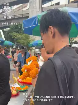 This is said to be the most powerful power spot in Bangkok! For those who can't go to Bangkok, I've posted a wallpaper image of this most powerful power spot in Bangkok 🙏😌✨It's the fifth image📱✨For those who are planning to go to Bangkok, the image also explains how to worship there✍️✨______________📍 Erawan Shrine ศาลท้าวมหาพรหมเอราวัณ💰 Free entry🗣️ The prayer set is 50 baht (210 yen) inside. There are many rip-off shops around, so be sure to buy it inside☝️🕐6:00-22:00______________ When I visited the other day, there was a line and many people were praying from the footbridge🙏