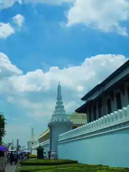 We drove ourselves and parked at the Navy restaurant, which is located next to the Chao Phraya River, then walked to the temple entrance. Inside the temple, we followed the designated path. It was very grand, like being in a traditional Thai drama.