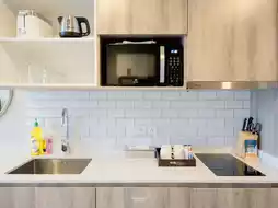 The room we stayed in was a King One Bedroom Suite Living Area (45 sqm), clearly separated into a bedroom and living room. There are complete kitchenware, so you can cook and there is a washing machine and dryer in the room.