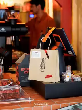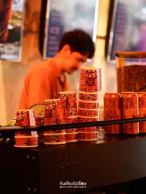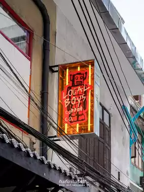 #triptravelasia Local Boys Coffee Co.🤖☕️A newly opened coffee shop in the Song Wat area, owned by the same owner as Jane, the daughter of Pa Dam😎 There are many coffee beans to choose from. The coffee is served in a bright orange can with a screen-printed logo of the shop that looks like a street kid, a little bit funny, it looks really cool.
