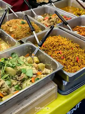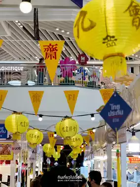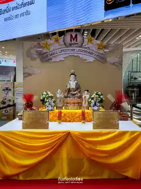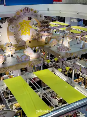 #กินเจ2567 The vegetarian festival of this year has arrived. For those who intend to eat vegetarian food, we have some vegetarian food places to recommend. This time, we came to The Mall Bangkapi, where there was a vegetarian food event held in the hall on the ground floor of G floor, where there were many food stalls. The main thing is the food. There is rice with curry, stir-fried noodles, fried food, drinks, and many fruits and vegetables. There is also a statue of Guan Yin for us to pay homage to.