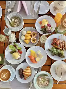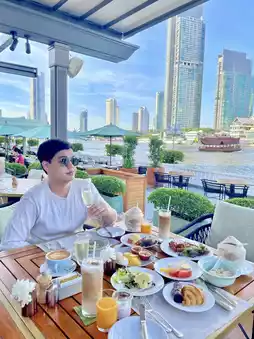 Come try breakfast at Verandah restaurant on the banks of the Chao Phraya River. The atmosphere is great. Breakfast here is buffet style. The menu is quite diverse. There is a complete American Breakfast corner, Thai food corner, noodle corner, Chinese dim sum corner, very good bakery corner, fruit corner with sticky rice with mango, the hotel's signature menu, and many kinds of drinks corner such as herbal juice, fruit juice, big sweet young coconut juice, and Sparkling Wine. However, there are still a few Signature menus, focusing on egg menus.