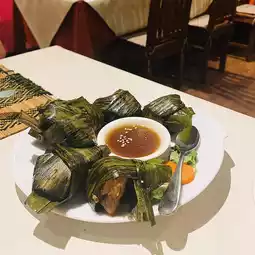 🥘Gedhawa traditional northern Thai cuisine, just walk out of Exit 5 and you will see the flowery exterior of the store, a natural and fresh touch in the bustling city; pandan leaf fried chicken, roast pork, and fried Tom Yum Goong shrimp are all delicious!