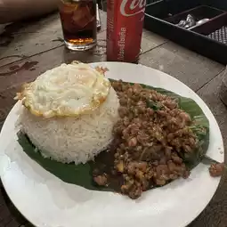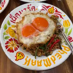 🐷Phed Mark's rice is delicious, order it slightly spicy and add two runny eggs!