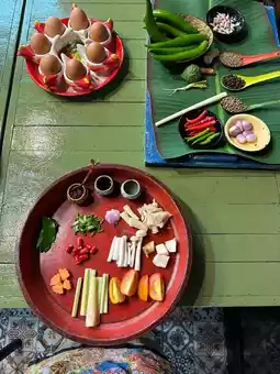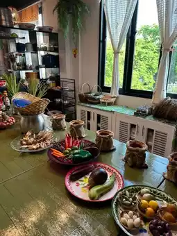 It's just like playing house for adults, hahaha, the experience is great! I can cook well even though I have no cooking experience! We ordered the Thai food course (there are actually many choices at the end of the picture, but the apron of this one is the best looking, hahaha, very suitable for taking pictures, girls just rush in blindly). One teacher teaches 6 students very carefully, and they can keep up with it completely, from introducing each dish to cutting small ingredients, everyone will finish the next step, which is very simple. The teacher knows a little simple Chinese, and most of the teaching is in English, so you need a little English foundation. The whole process takes 3 hours, with a total of 5 dishes, each dish is super delicious, and everyone agrees that it is more delicious than the outside restaurant, all the dishes are clean. The course is divided into three classes: morning, noon and evening. In the morning class, the teacher will take the students to the vegetable market to experience buying vegetables, but they need to leave at 8 o'clock. We really can't get up, so we chose the afternoon time. In the afternoon and evening, the ingredients are prepared directly in the classroom, and the explanation starts to cook! At the end, the teacher will translate your name into Thai, and give you a certificate and recipes