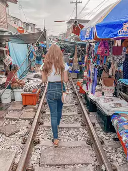 A famous tourist spot with shops lined up along the railway tracks that run through Maeklong Station and Bang Laem Station 🚇