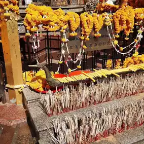 The statue of the Four-Faced Buddha is grand and impressive, with each face representing different blessings: love, wealth, health, and happiness. Many devotees come here to pray for their wishes and offer garlands or incense to show their devotion.