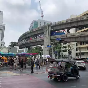 Take the BTS Light Green Line and get off at Phloen Chit station, then head towards Exit 8 of Chit Lom station. Walk towards Central World and you'll arrive.