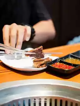 We tried the 599+ set. Let me tell you that there are a lot of options. When ordering food, the restaurant will give you a QR code to scan and order. There is also seafood included. For those who love grilled seafood, I tell you that just ordering shrimp is worth it.