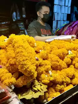 ② Offering: Place offerings such as drinks and garlands in front of the elephant statue; if you have a scarf, give it to the staff, who will help put it on your neck.